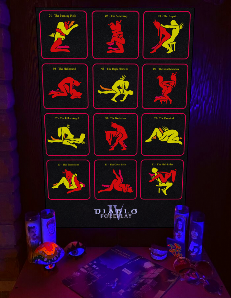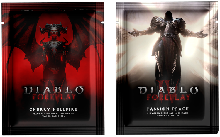 We’ve got you covered. Limited edition Diablo IV lube, condoms, posters and t-shirts