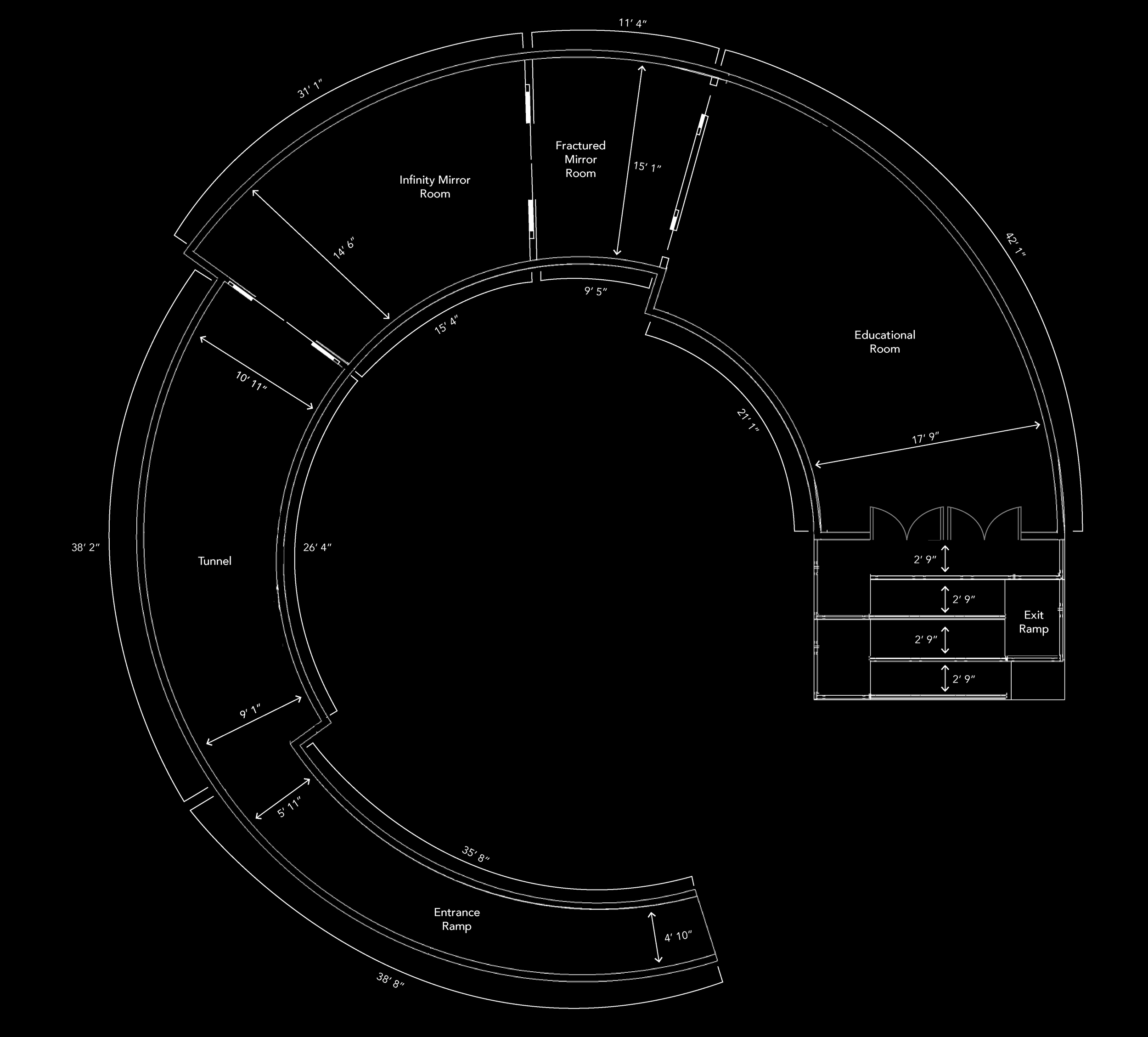 Immersive circular tunnel with an educational section where visitors learn about the creative team responsible for each episode and can purchase merch. Includes A Sit-down bar where visitors socialize after the experience.