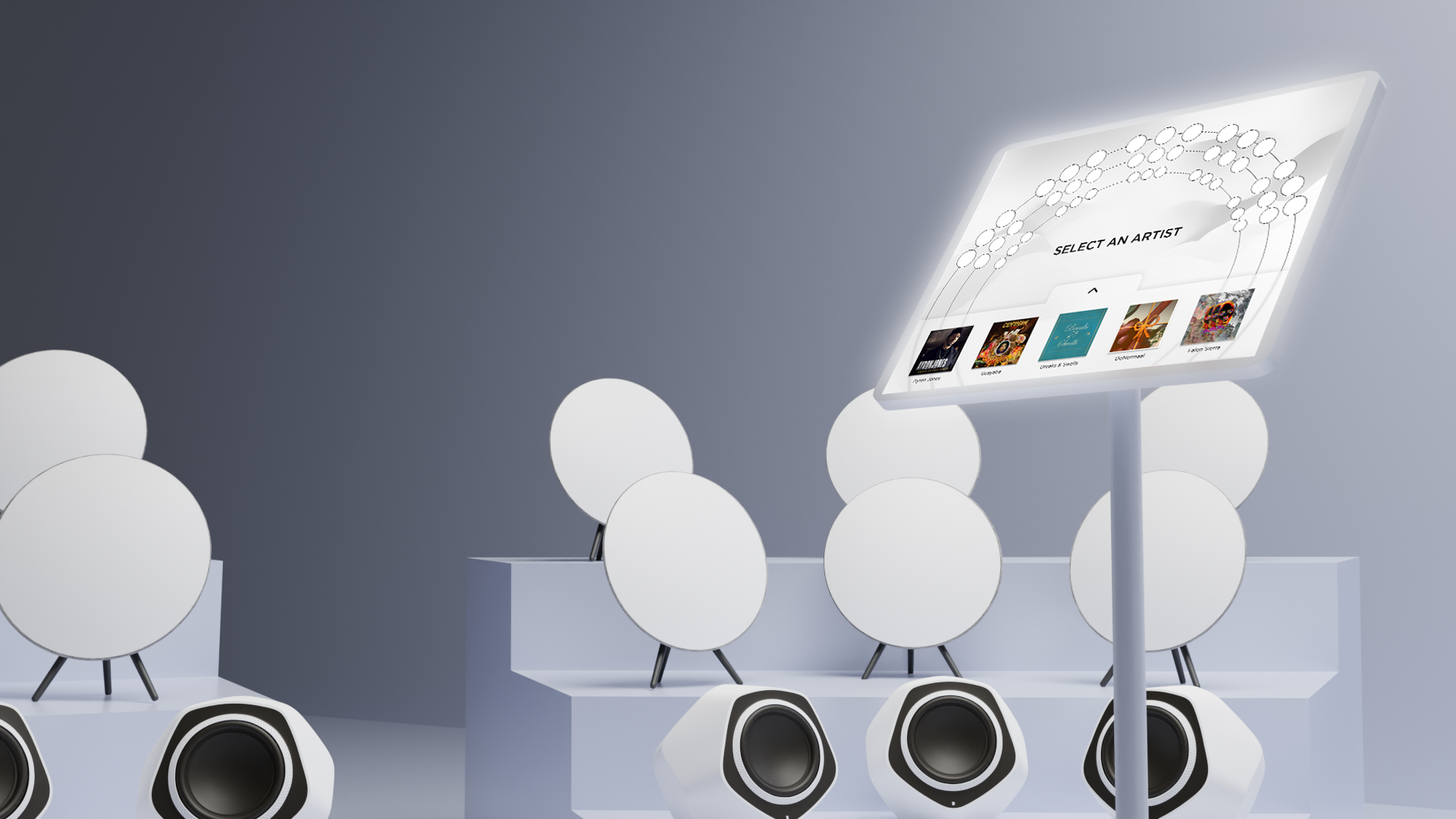 Utilizing Bang & Olufsen products, orchestra set-ups will be displayed in major cities. Here, the public can interact with them and play music to experience the powerful sound of B&O. To play music and act as a conductor, one would utilize a digital tablet. These will feature local and big artists.